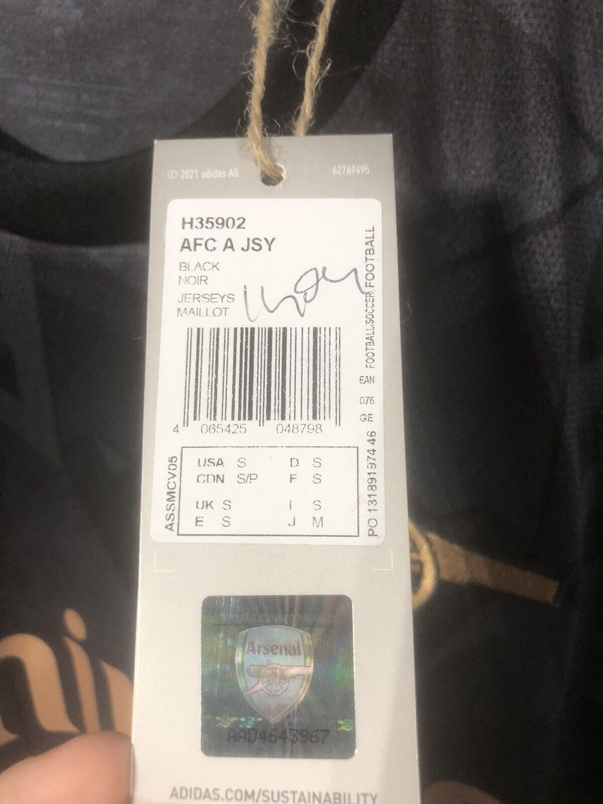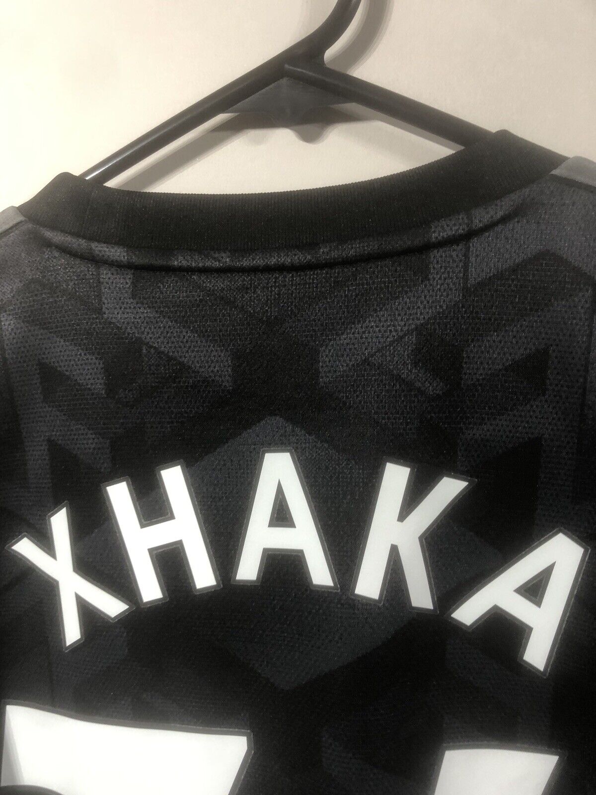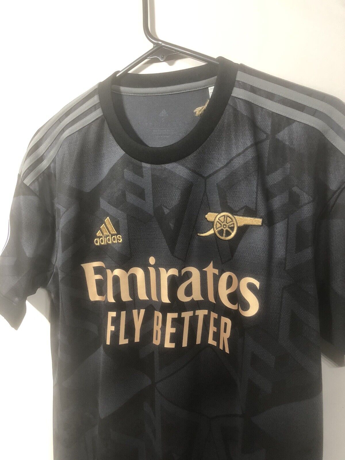Show your support for Arsenal with this brand new Xhaka #34 2022/23 away football shirt. The black shirt features short sleeves and a loose fit, making it suitable for adults in a small. The shirt is made by Adidas and has a product code of H35902, ensuring that you get a genuine item. This shirt has collar to hem measurements of 29 inches and pit to pit measurements of 19 inches. The shirt has an official Xhaka #34 nameset and an official Premier League player size patch. This shirt is suitable for wearing casually or at the match, so why not show your love for Arsenal by getting this shirt today.