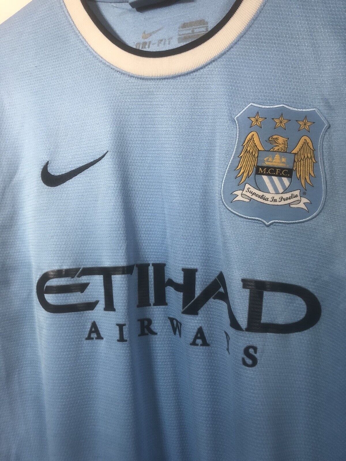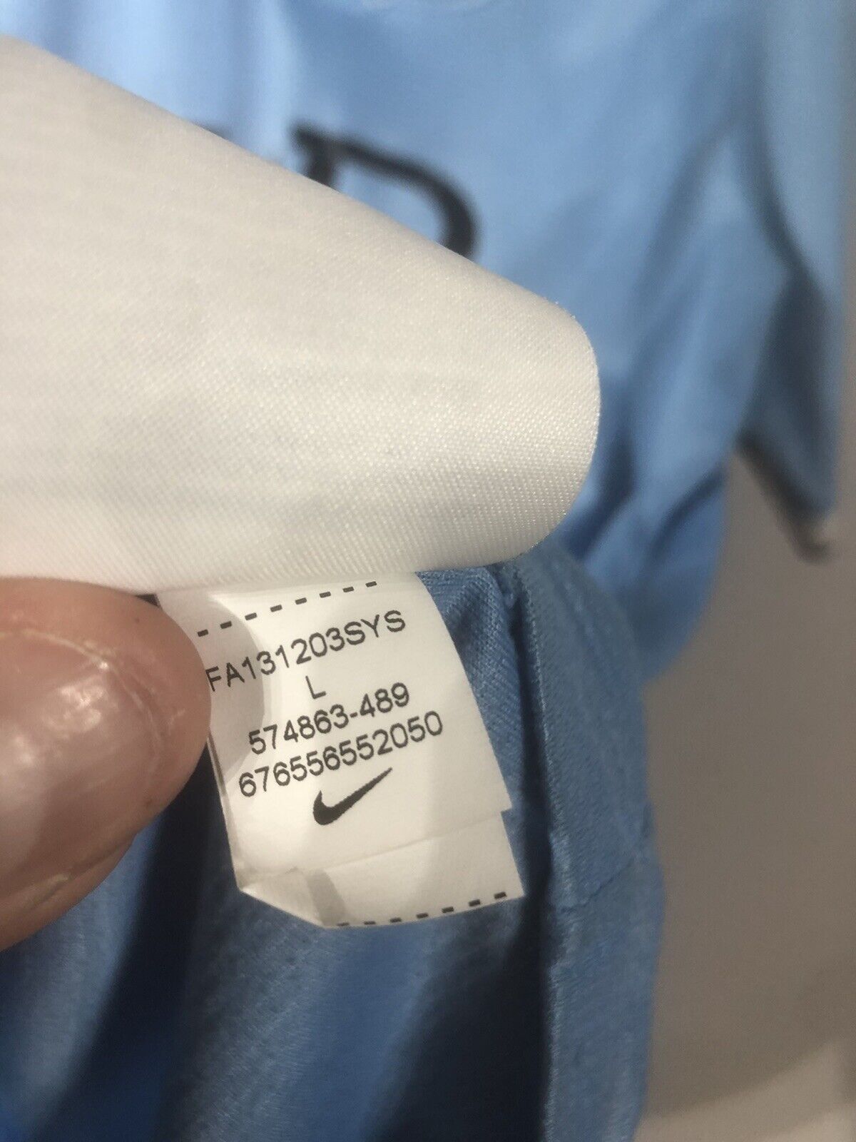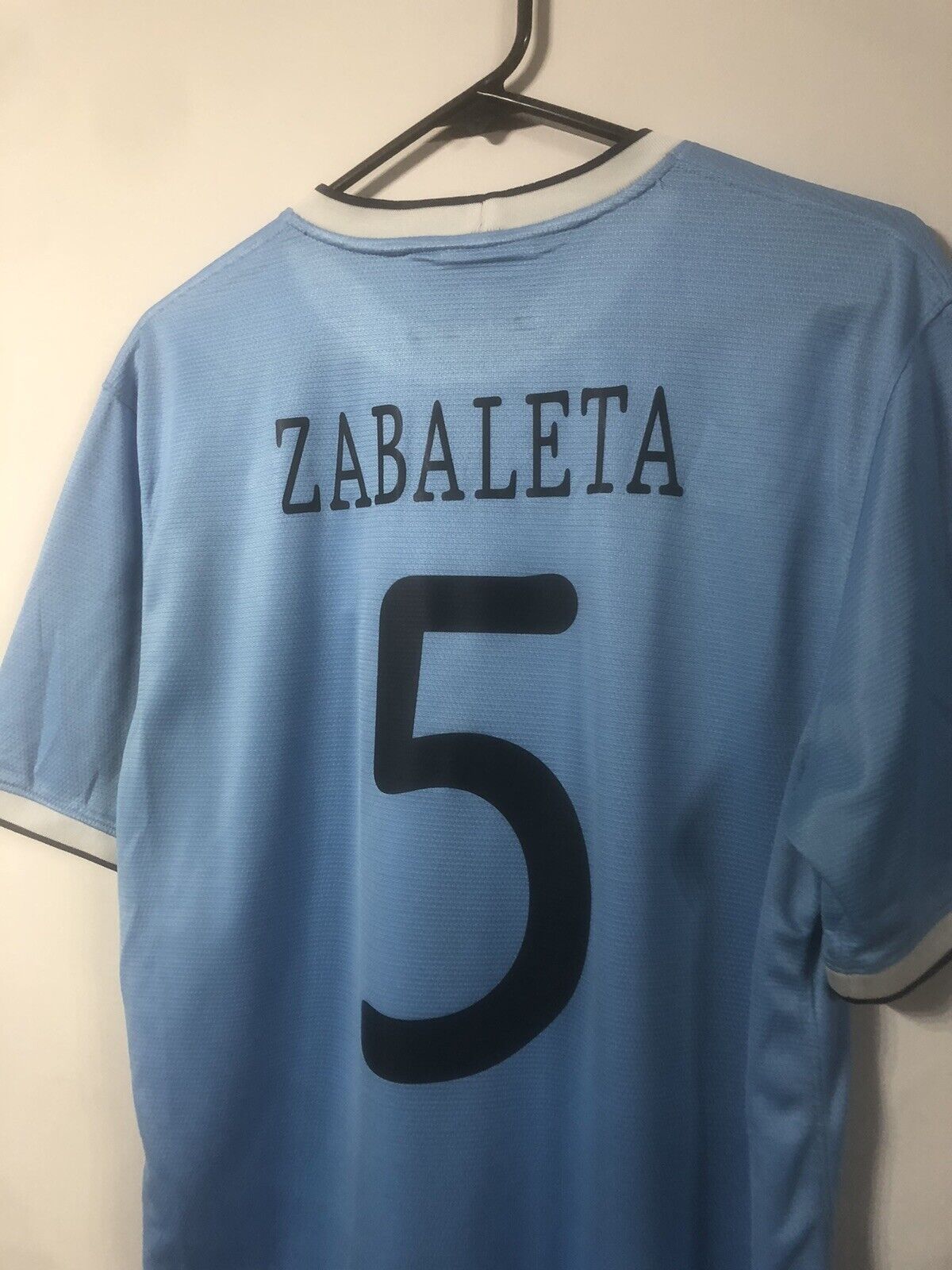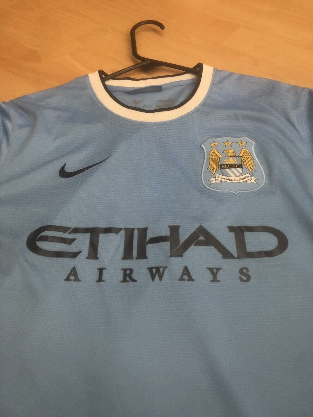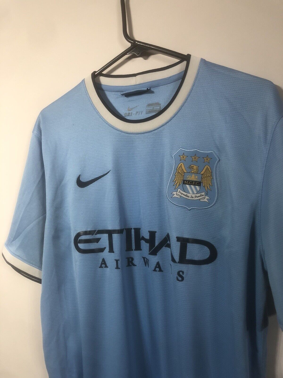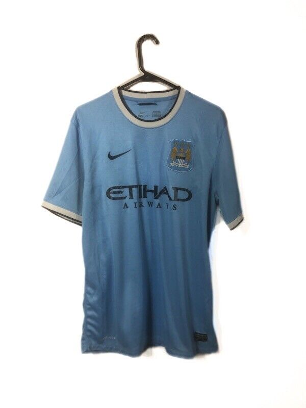 Show your support for Manchester City with this very good condition Zabaleta #5 2013/14 home football shirt. The stylish sky blue design features short sleeves and a loose fit, making it suitable for adults in a size large. The shirt is made by Nike and has a product code of 574863-489, ensuring that you get a genuine item. This shirt has collar to hem measurements of 29 inches and pit to pit measurements of 21.5 inches. The shirt has an official euro Zabaleta #5 nameset. This shirt is suitable for wearing casually or at the match, so why not show your love for Manchester City by getting this shirt today.