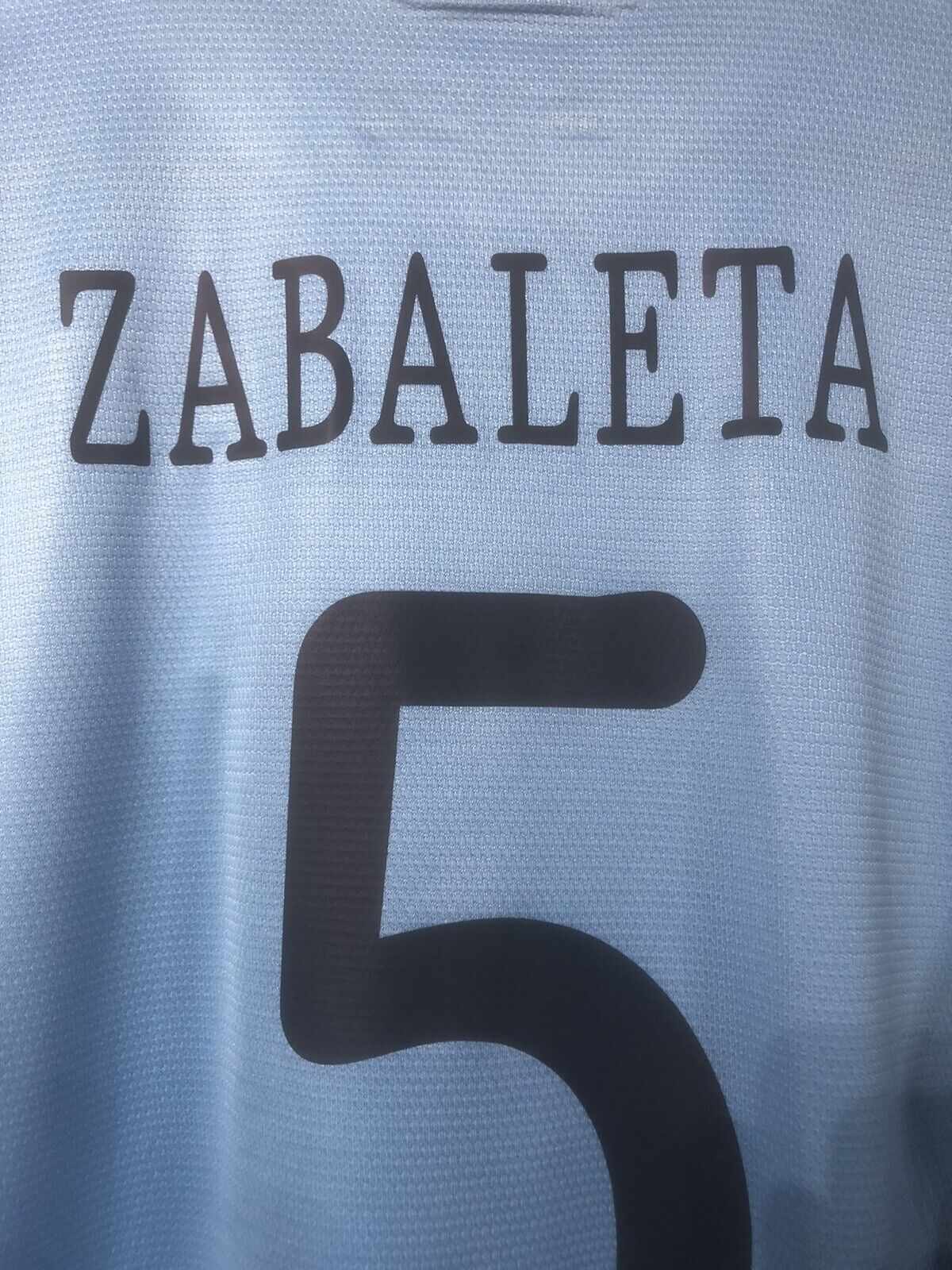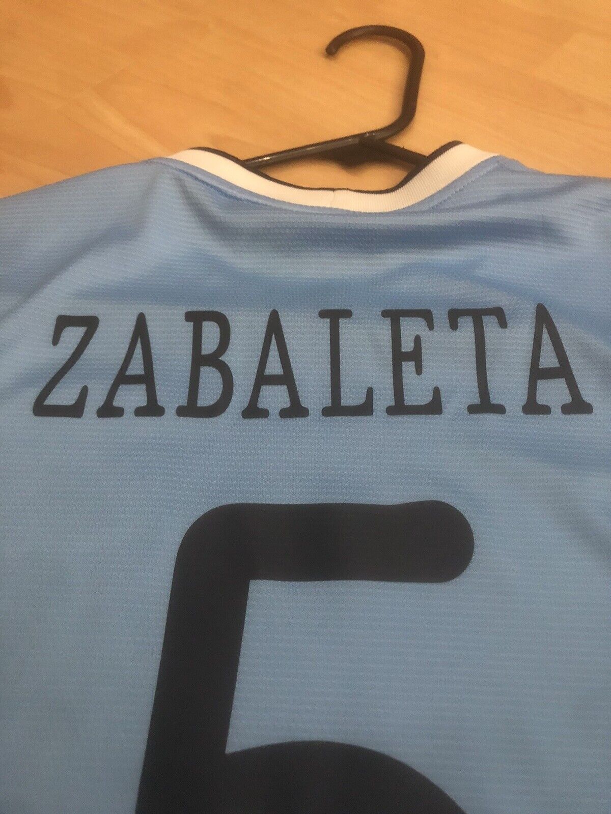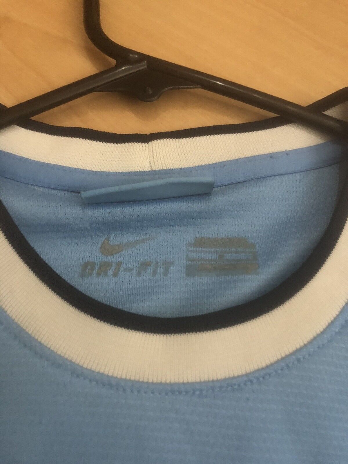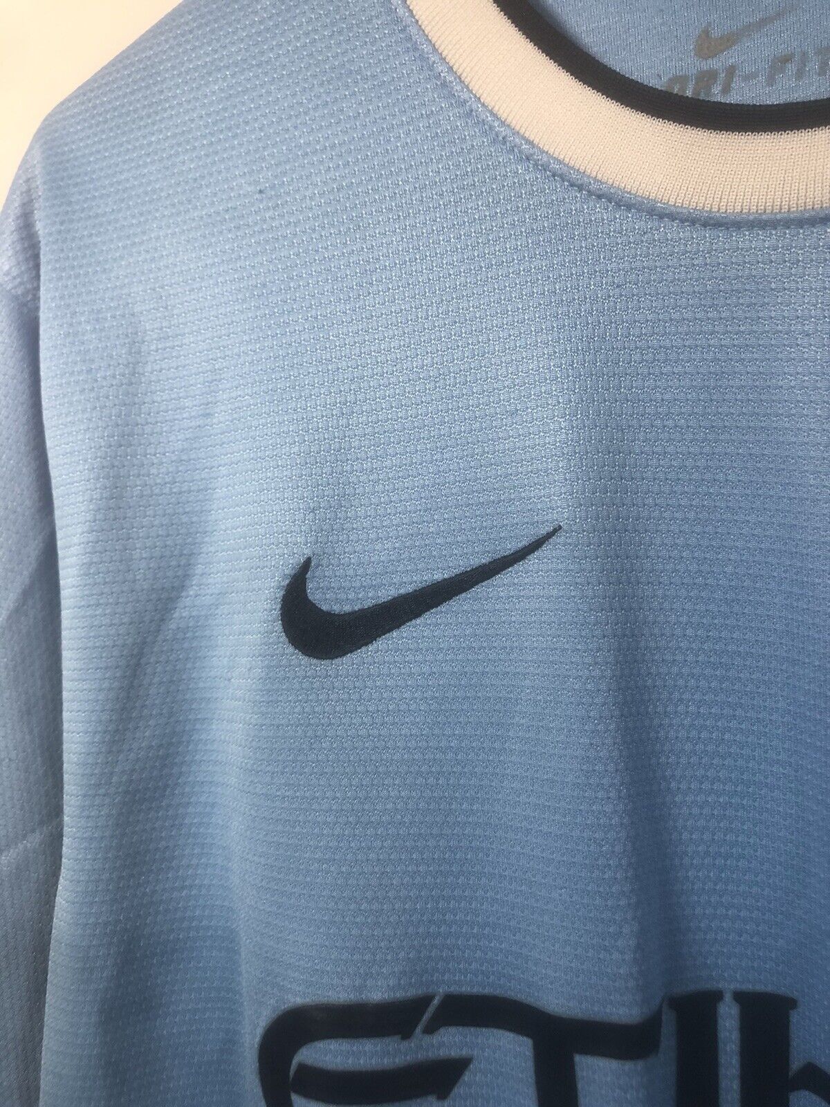 Show your support for Manchester City with this very good condition Zabaleta #5 2013/14 home football shirt. The stylish sky blue design features short sleeves and a loose fit, making it suitable for adults in a size large. The shirt is made by Nike and has a product code of 574863-489, ensuring that you get a genuine item. This shirt has collar to hem measurements of 29 inches and pit to pit measurements of 21.5 inches. The shirt has an official euro Zabaleta #5 nameset. This shirt is suitable for wearing casually or at the match, so why not show your love for Manchester City by getting this shirt today.