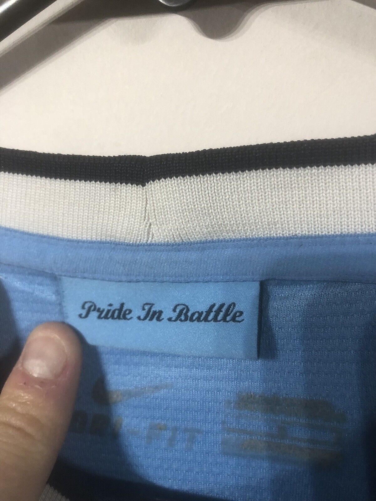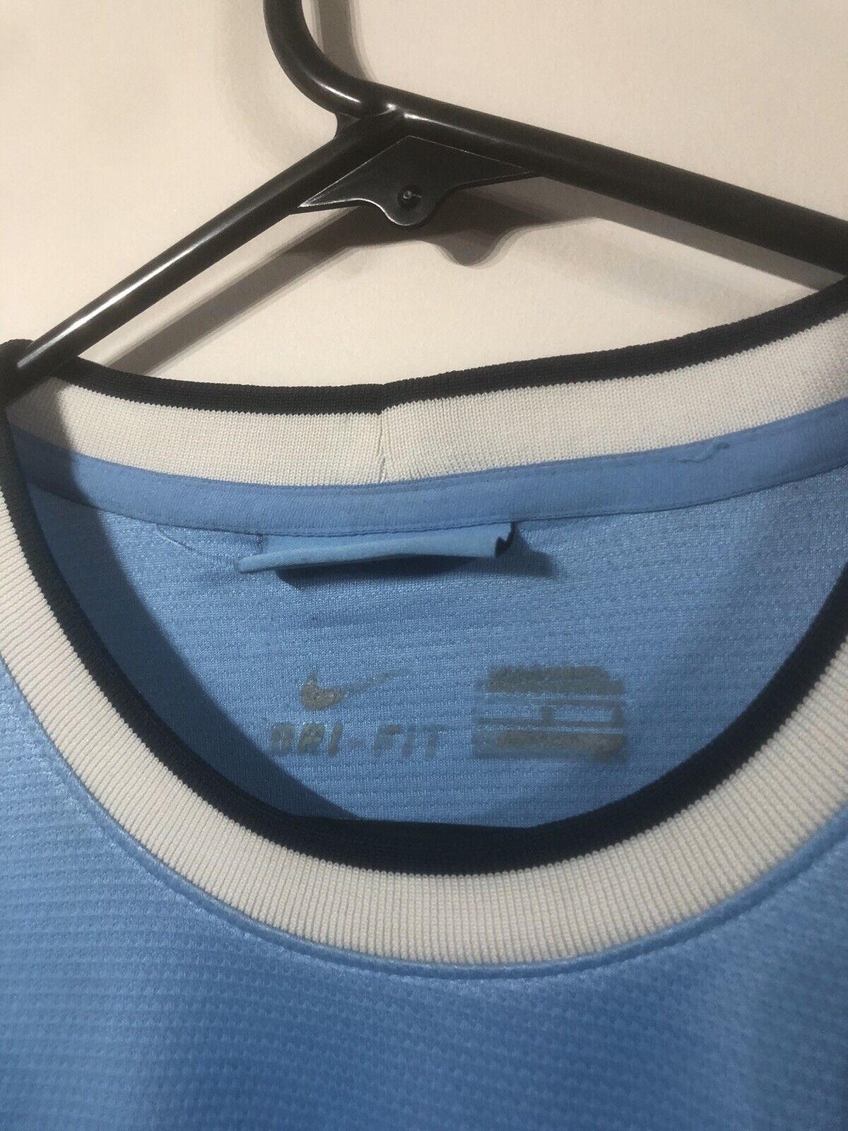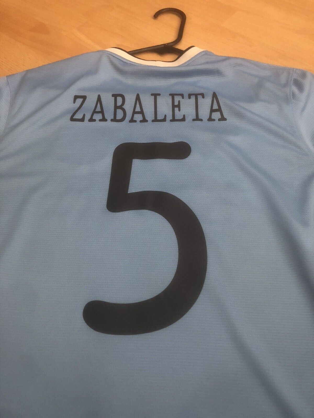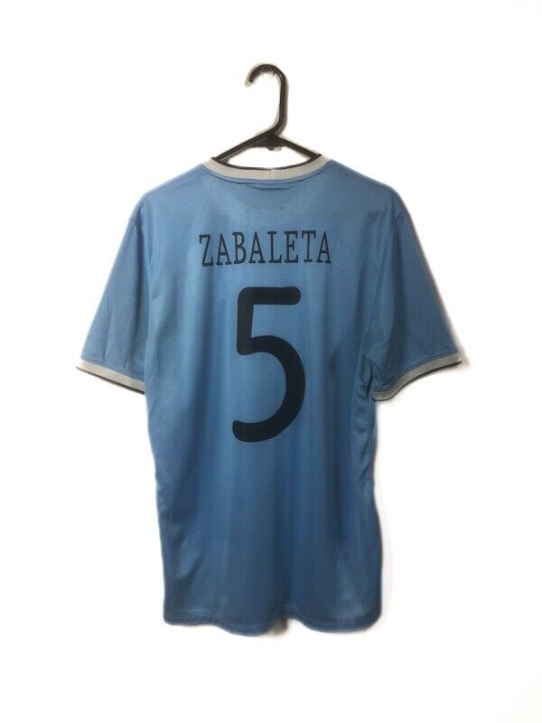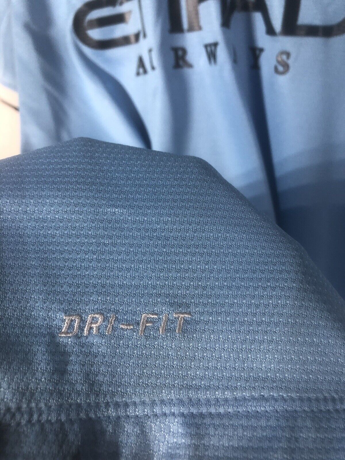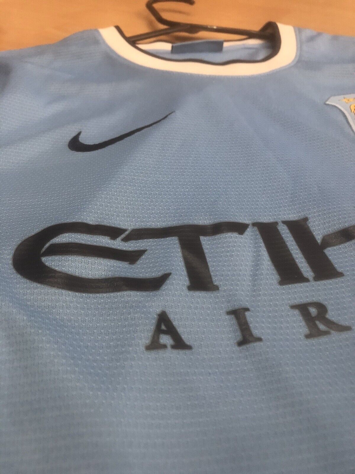Show your support for Manchester City with this very good condition Zabaleta #5 2013/14 home football shirt. The stylish sky blue design features short sleeves and a loose fit, making it suitable for adults in a size large. The shirt is made by Nike and has a product code of 574863-489, ensuring that you get a genuine item. This shirt has collar to hem measurements of 29 inches and pit to pit measurements of 21.5 inches. The shirt has an official euro Zabaleta #5 nameset. This shirt is suitable for wearing casually or at the match, so why not show your love for Manchester City by getting this shirt today.